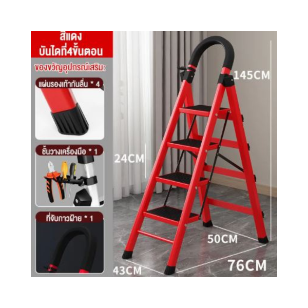 บันไดพับได้ 4ชั้น รุ่น HMLV-00007-4-RD