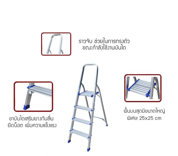 – ขั้นบนสุดมีขนาดใหญ่พิเศษ 25×25 ซม. สามารถยืนบนขั้นบนสุดได้