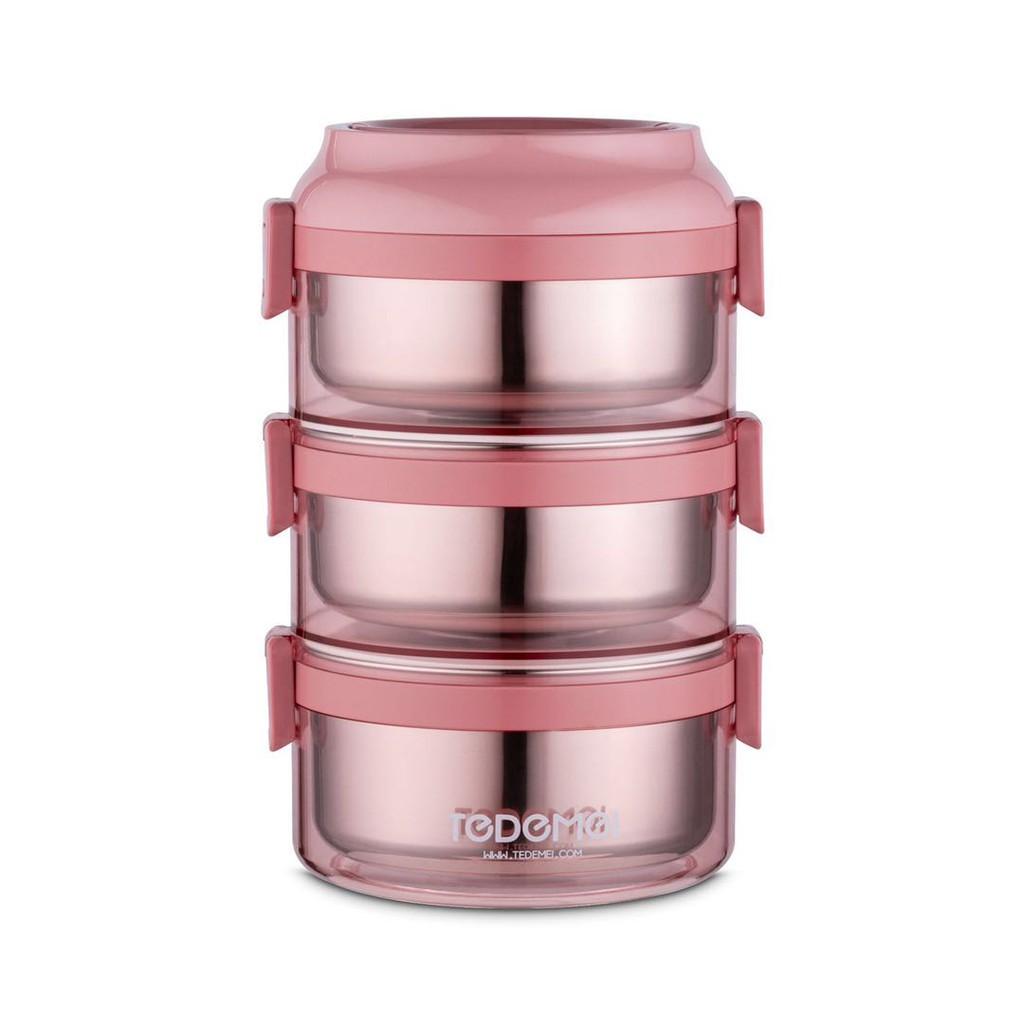 ปิ่นโต3ชั้นมีหูหิ้ว (สีชมพู) รุ่น KC0018-PK