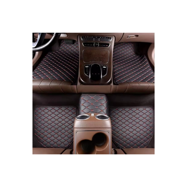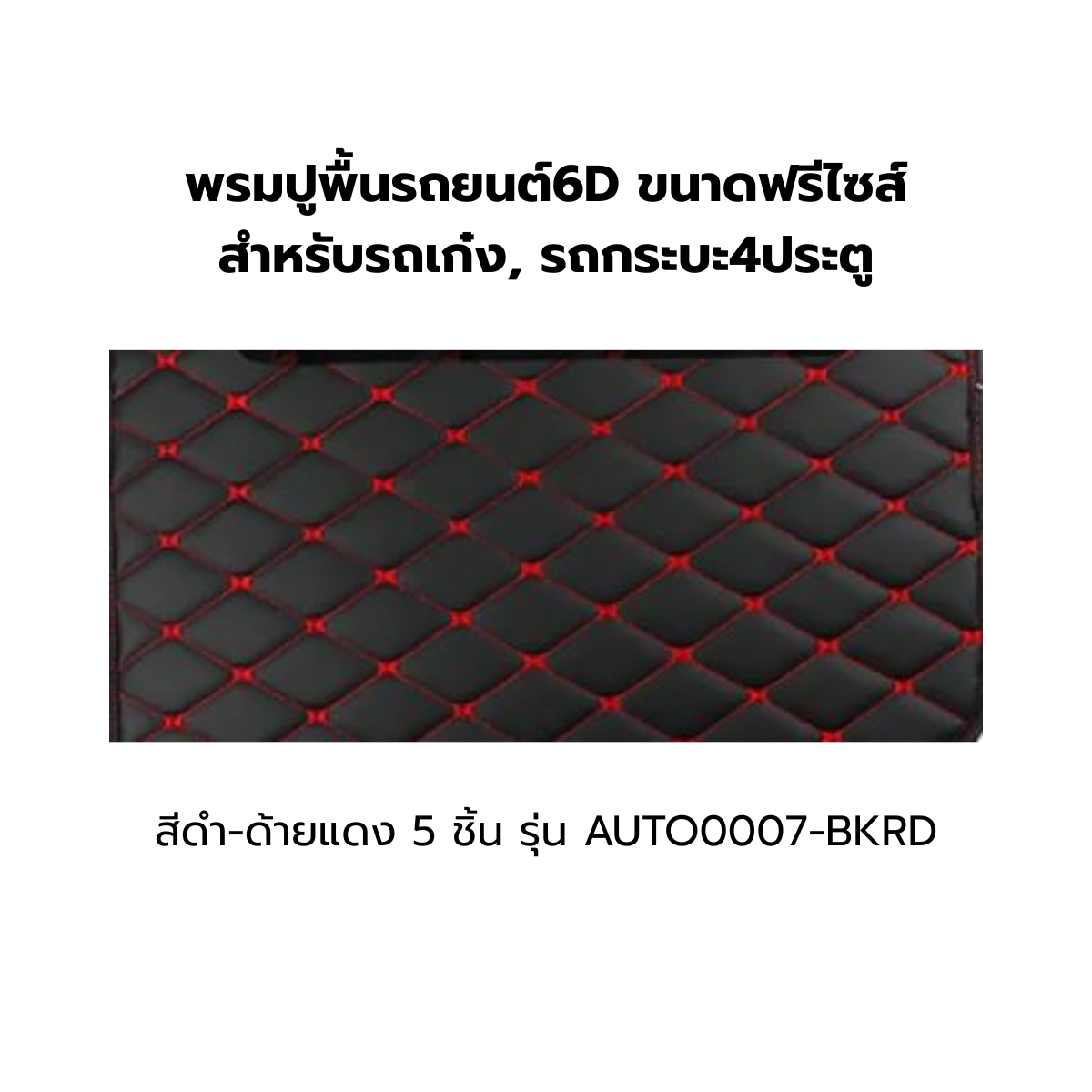 พรมปูพื้นรถยนต์6D ขนาดฟรีไซส์ สำหรับรถเก๋ง, รถกระบะ4ประตู สีดำ-ด้ายแดง 5ชิ้น รุ่น AUTO0007-BKRD