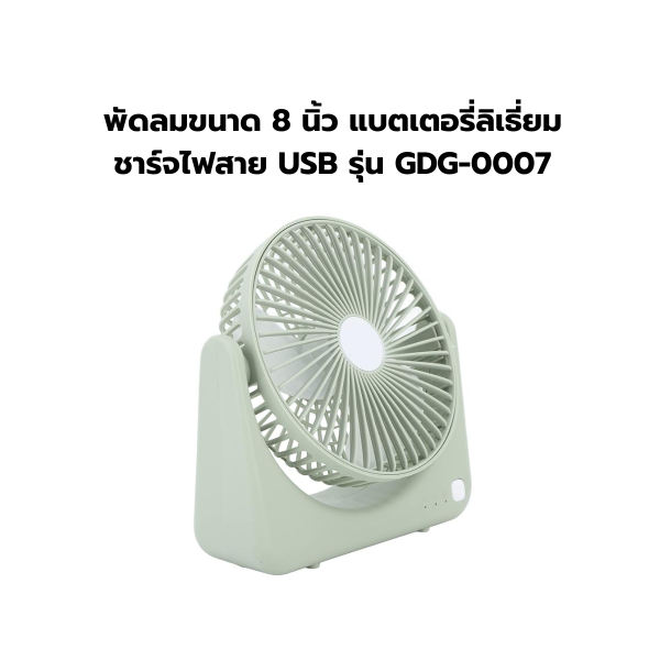 พัดลมขนาด 8นิ้ว แบตเตอรี่ลิเธี่ยม ชาร์จไฟสาย USB รุ่น GDG-0007