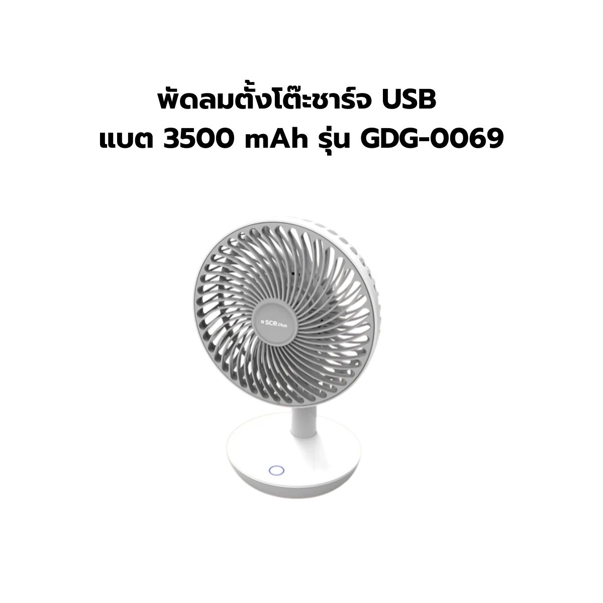 พัดลมตั้งโต๊ะชาร์จ USB แบต 3500 mAh รุ่น GDG-0069