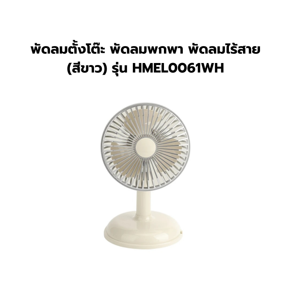 พัดลมตั้งโต๊ะ พัดลมพกพา พัดลมไร้สาย( สีขาว ) รุ่น HMEL0061WH