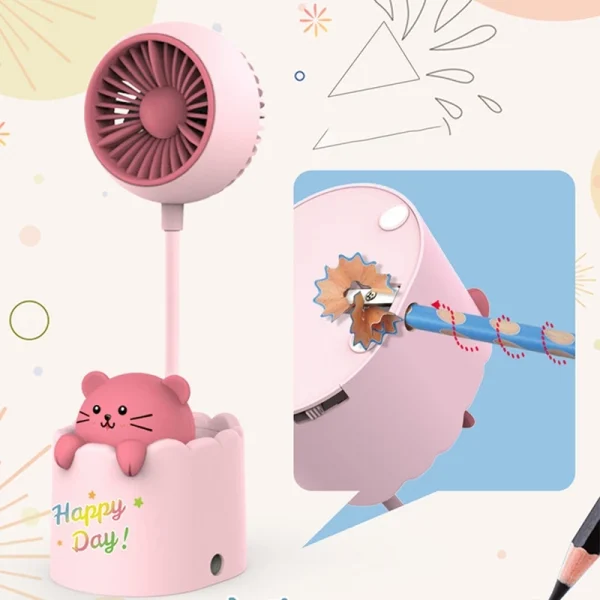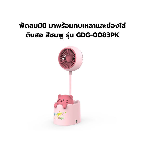 พัดลมมินิ มาพร้อมกบเหลาและช่องใส่ดินสอ สีชมพู รุ่น GDG-0083PK