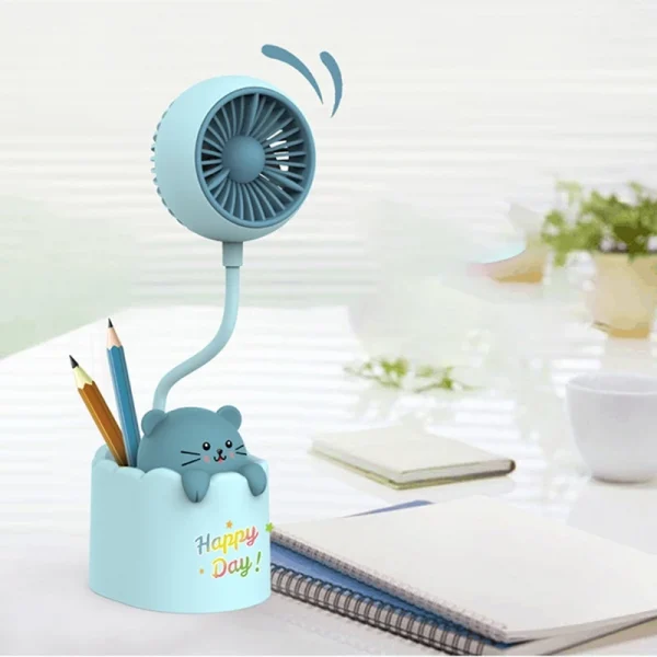 พัดลมมินิ มาพร้อมกบเหลาและช่องใส่ดินสอ สีฟ้า รุ่น GDG-0083BU