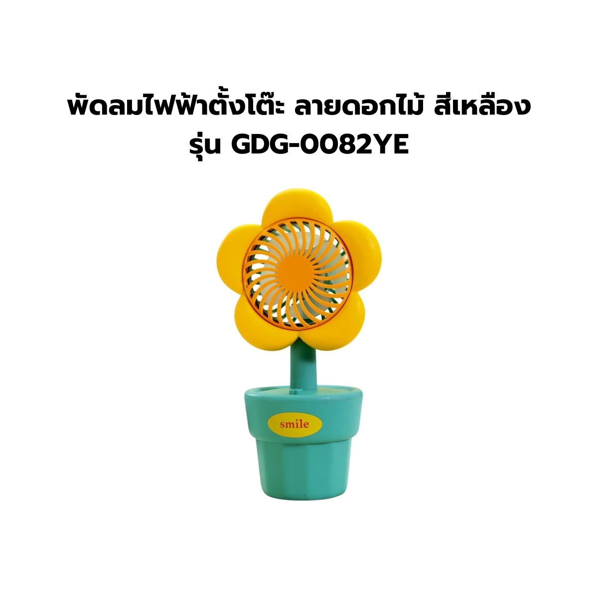 พัดลมไฟฟ้าตั้งโต๊ะ ลายดอกไม้ สีเหลือง รุ่น GDG-0082YE
