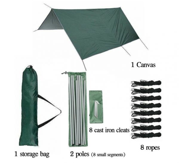 ผ้าใบ+เสา2ต้น+พุกเหล็กหล่อ8ตัว+เชือก8เส้น+ถุงเก็บ