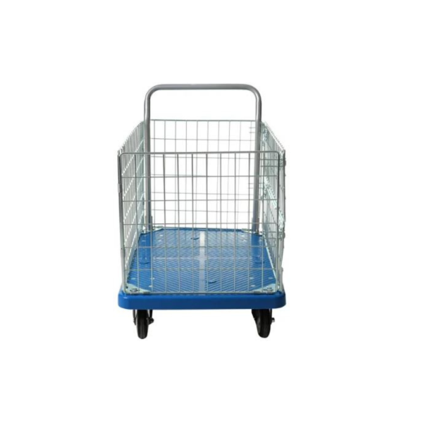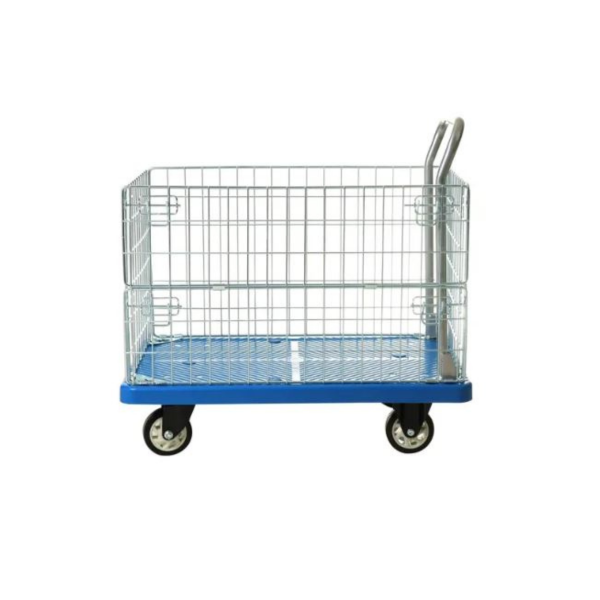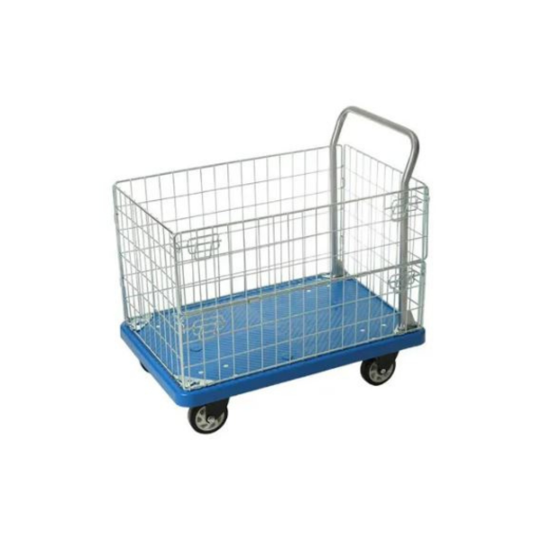 รถเข็นอเนกประสงค์ 4 ล้อ พร้อมตะแกรงโลหะสองชั้น สามารถเลือกปรับพับได้ ล้อผลิตจากพลาสติกโพลียูรีเทน (PU) เคลื่อนที่สะดวกได้ทั้งพื้นผิวเรียบ/ขรุขระ พื้นผิวรถเข็นขนาดกว้าง และมีร่องกันลื่น ป้องกันสิ่งของไหลร่วงลงมาจากรถเข็น