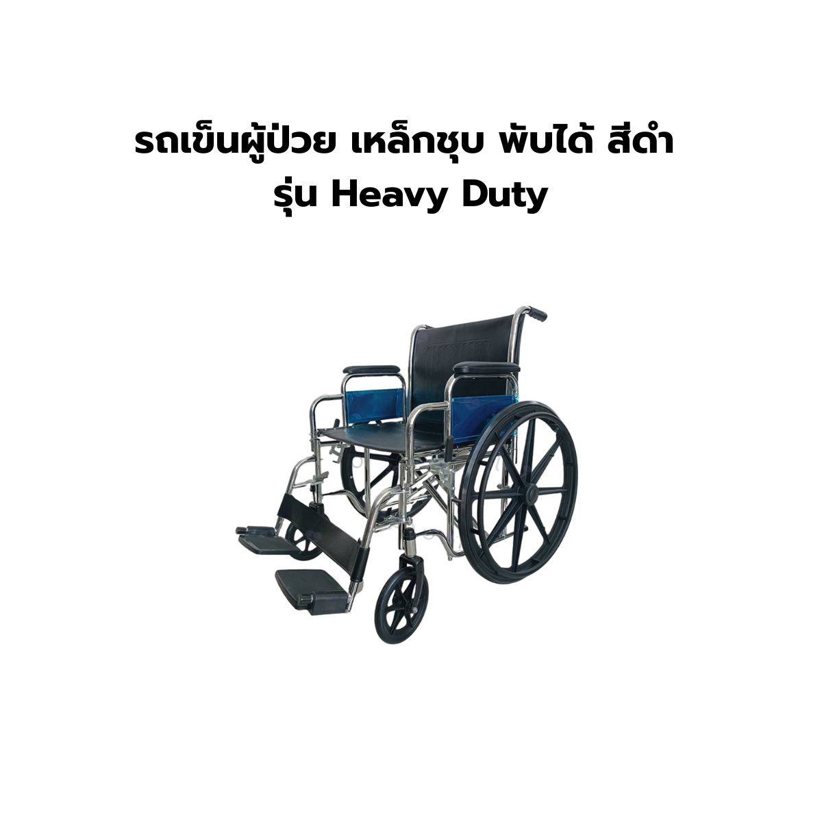รถเข็นผู้ป่วย เหล็กชุบ พับได้ สีดำ รุ่น Heavy Duty