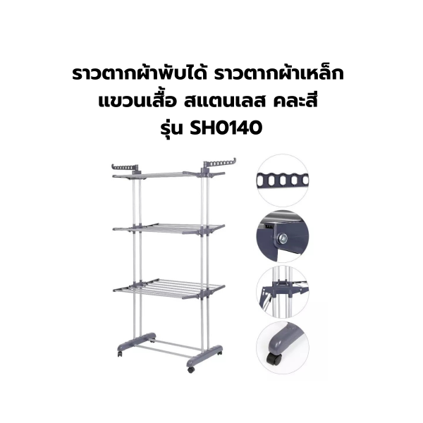 ราวตากผ้าพับได้ ราวตากผ้าเหล็ก แขวนเสื้อ สแตนเลส คละสี รุ่น SH0140