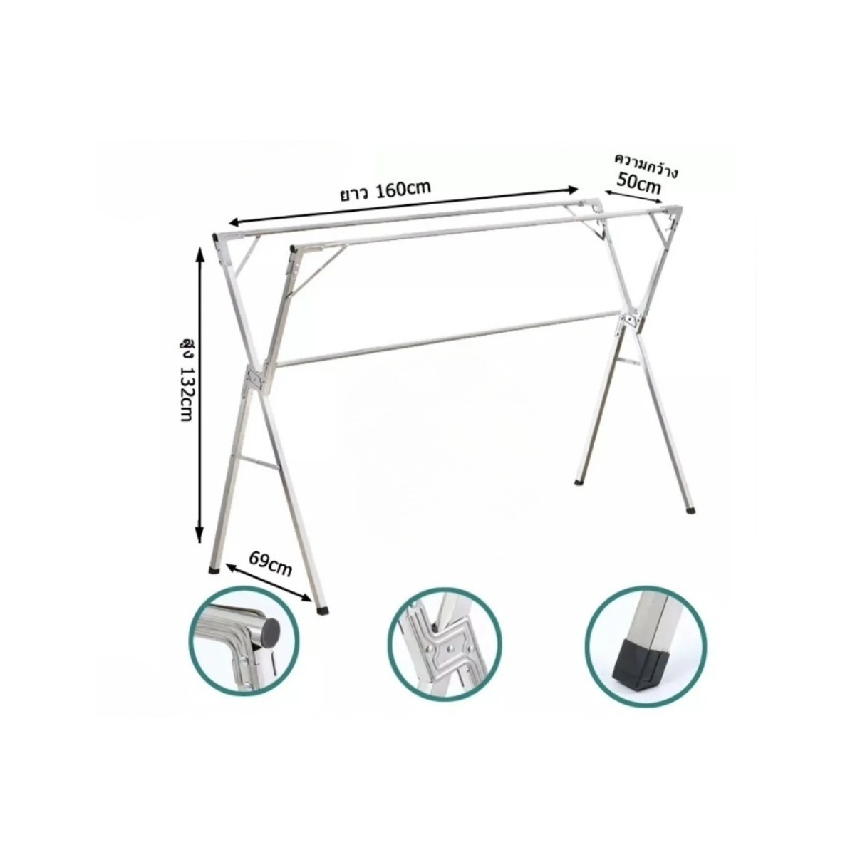 ราวตากผ้าสแตนเลส ตัวX พับได้ ยาว160 cm. รุ่น SH0123