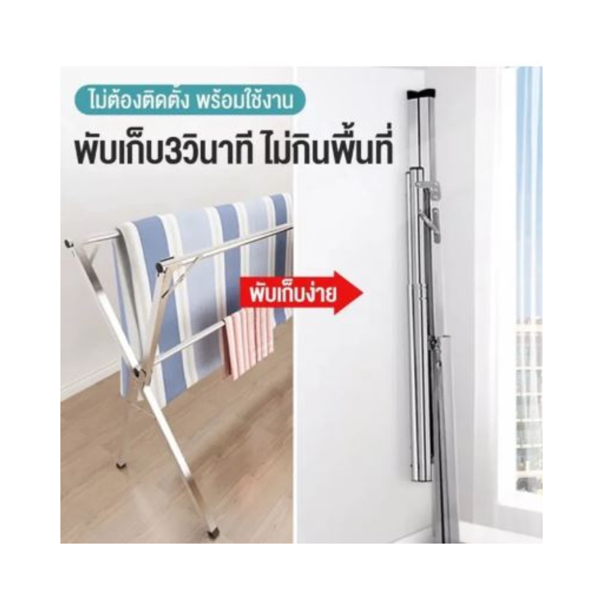 ราวตากผ้าบาร์คู่แข็งแรงคุ้ม ประหยัดค่าพื้นที่เคลื่อนย้ายสะดวก