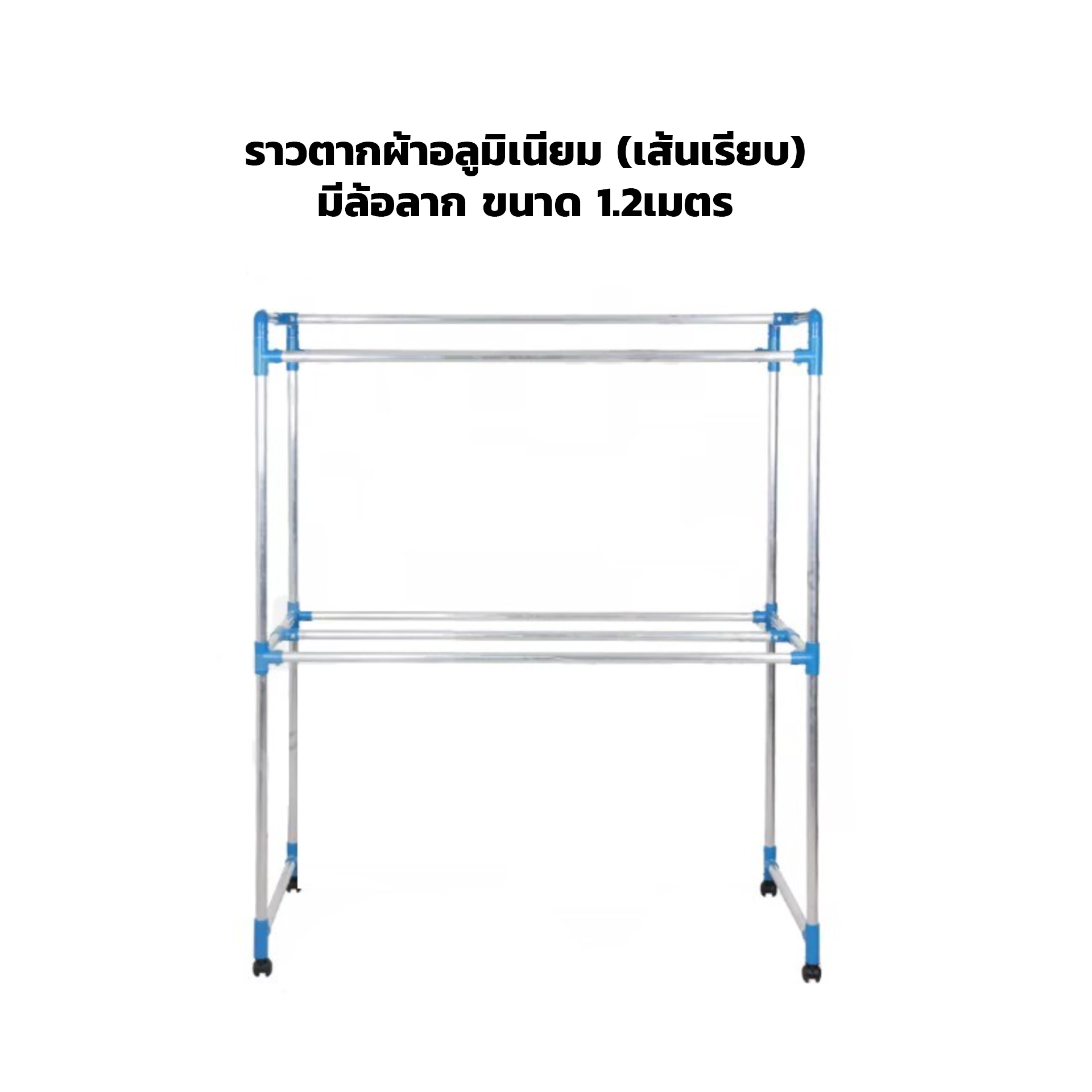 ราวตากผ้าอลูมิเนียม (เส้นเรียบ) มีล้อลาก ขนาด 1.2เมตร
