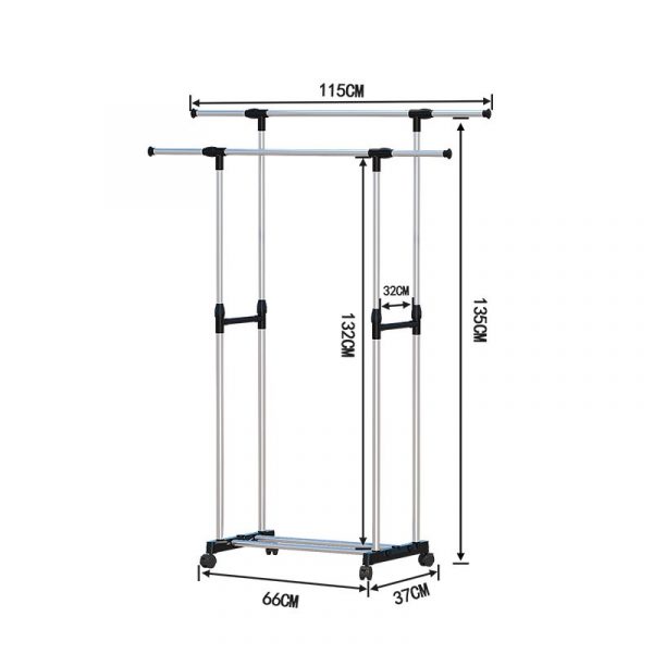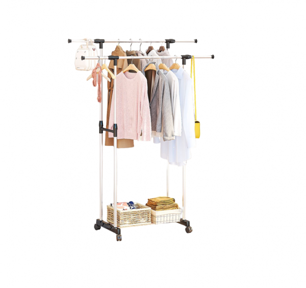 ราวตากผ้า ราวแขวนผ้าติดล้อ ราวคู่ ปรับความสูงได้