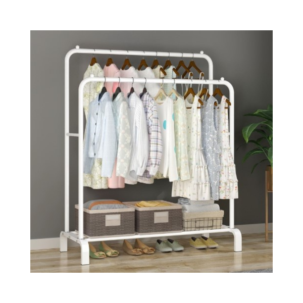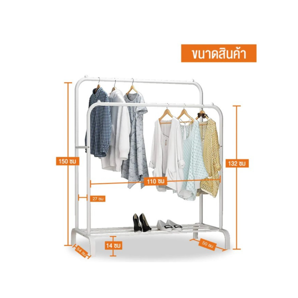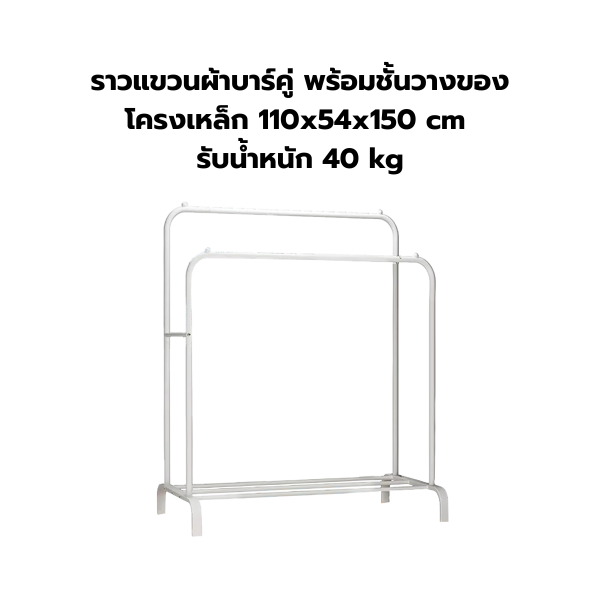 ราวแขวนผ้าบาร์คู่ พร้อมชั้นวางของ โครงเหล็ก 110x54x150 cm รับน้ำหนัก 40 kg