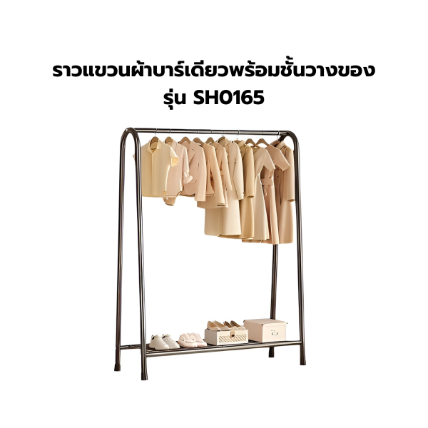 ราวแขวนผ้าบาร์เดียวพร้อมชั้นวางของ รุ่น SH0165