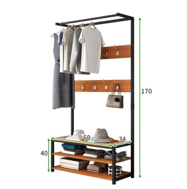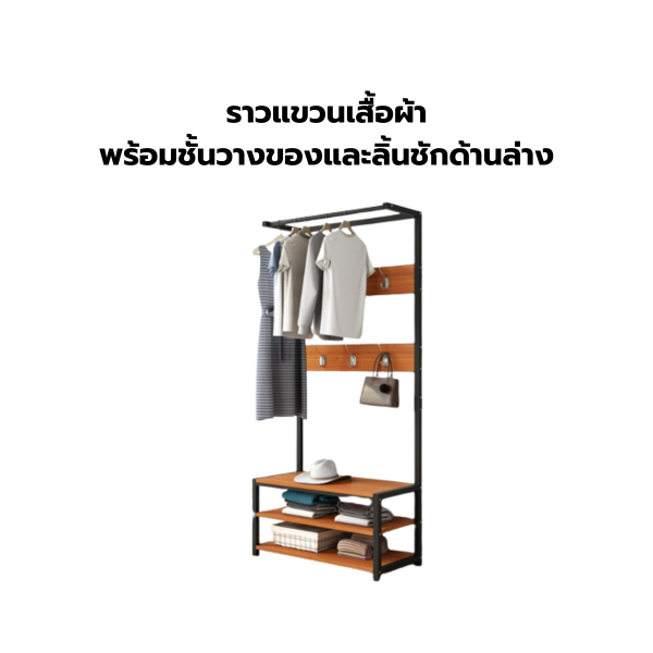 ราวแขวนเสื้อผ้า พร้อมชั้นวางของและลิ้นชักด้านล่าง