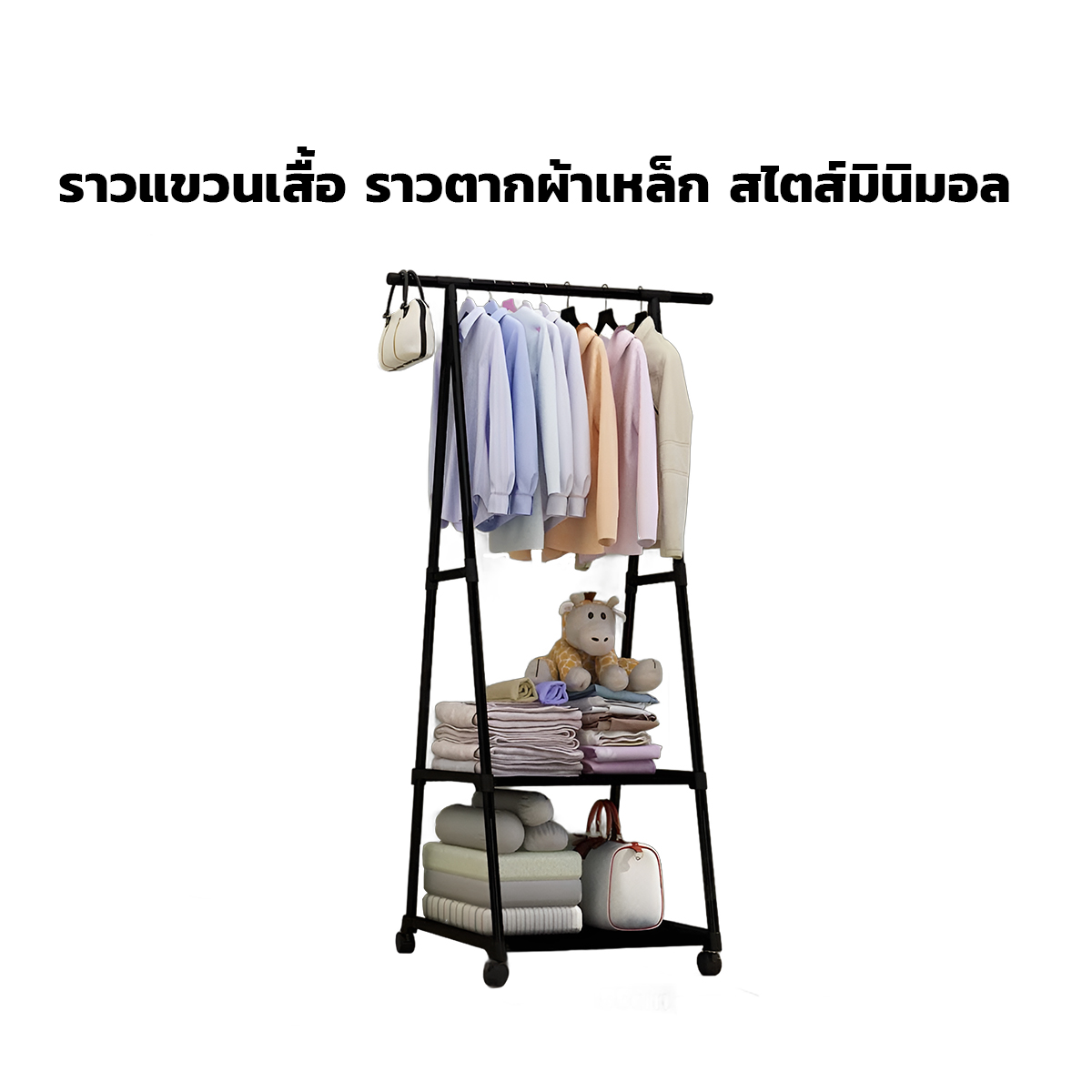 – ราวแขวนผ้า มีล้อเลื่อน สะดวกต่อการเคลื่อนย้าย