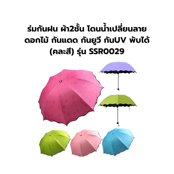 ร่มกันฝน ผ้า2ชั้น โดนน้ำเปลี่ยนลายดอกไม้ กันแดด กันยูวี กันUV พับได้ พับ (คละสี) รุ่น SSR0029