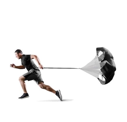 • (เครื่องช่วยเร่งความเร็ว) การทดลองแสดงให้เห็นว่าร่มชูชีพที่มีเส้นผ่านศูนย์กลาง 56 นิ้วสามารถสร้างแรงต้านได้ 12-33 ปอนด์ ยิ่งเร็วเท่าไรก็ยิ่งมีแรงต้านเร็วขึ้นเท่านั้น คุณยังสามารถเพิ่มความยากในการเล่นกีฬาได้โดยการเพิ่มแรงต้านของร่มชูชีพ 1-3 เท่า และทำให้ร่มเคลื่อนที่เร็วขึ้น ห่วงชูชีพสำหรับการฝึกนี้เหมาะสำหรับกีฬาทุกประเภทที่ต้องการการฝึกการระเบิดและการเร่งความเร็ว เช่น ลู่วิ่งและสนามฟุตบอล/สนามฟุตบอล บาสเก็ตบอล เล่นสเก็ตและอื่น ๆ