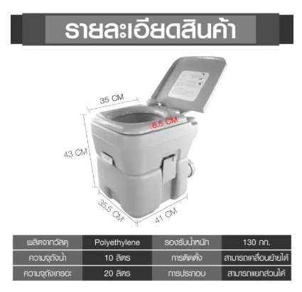 สุขาเคลื่อนที่ ชักโครกเคลื่อนที่ ชักโครกพกพา ส้วนเคลื่อนที่ ส้วมคนแก่ ส้วมพกพา สุขาพกพา สุขาผู้สูงอายุ Portable toilet (สีเทา)