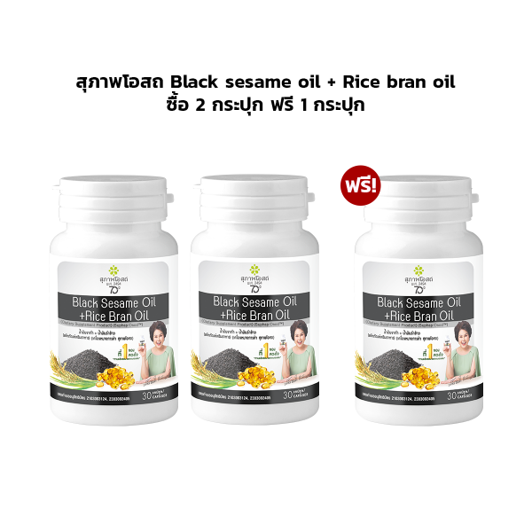สุภาพโอสถ Black sesame oil + Rice bran oil ซื้อ 2 กระปุก ฟรี 1 กระปุก