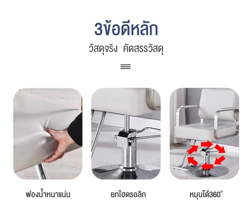 ระบบไฮดรอลิก ปรับระดับสูง-ต่ำได้ มีที่วางเท้า สำหรับพักเท้าขณะนั่งทำผม