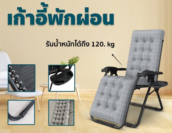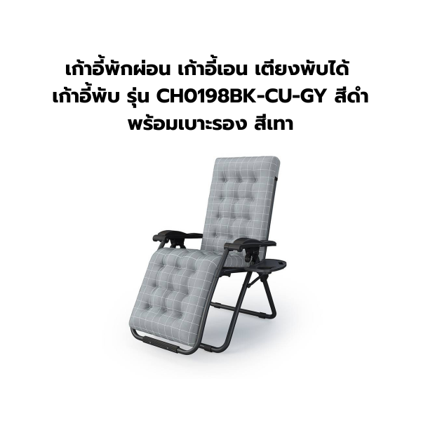 เก้าอี้พักผ่อน เก้าอี้เอน เตียงพับได้ เก้าอี้พับ รุ่น CH0198BK-CU-GY สีดำ พร้อมเบาะรอง สีเทา
