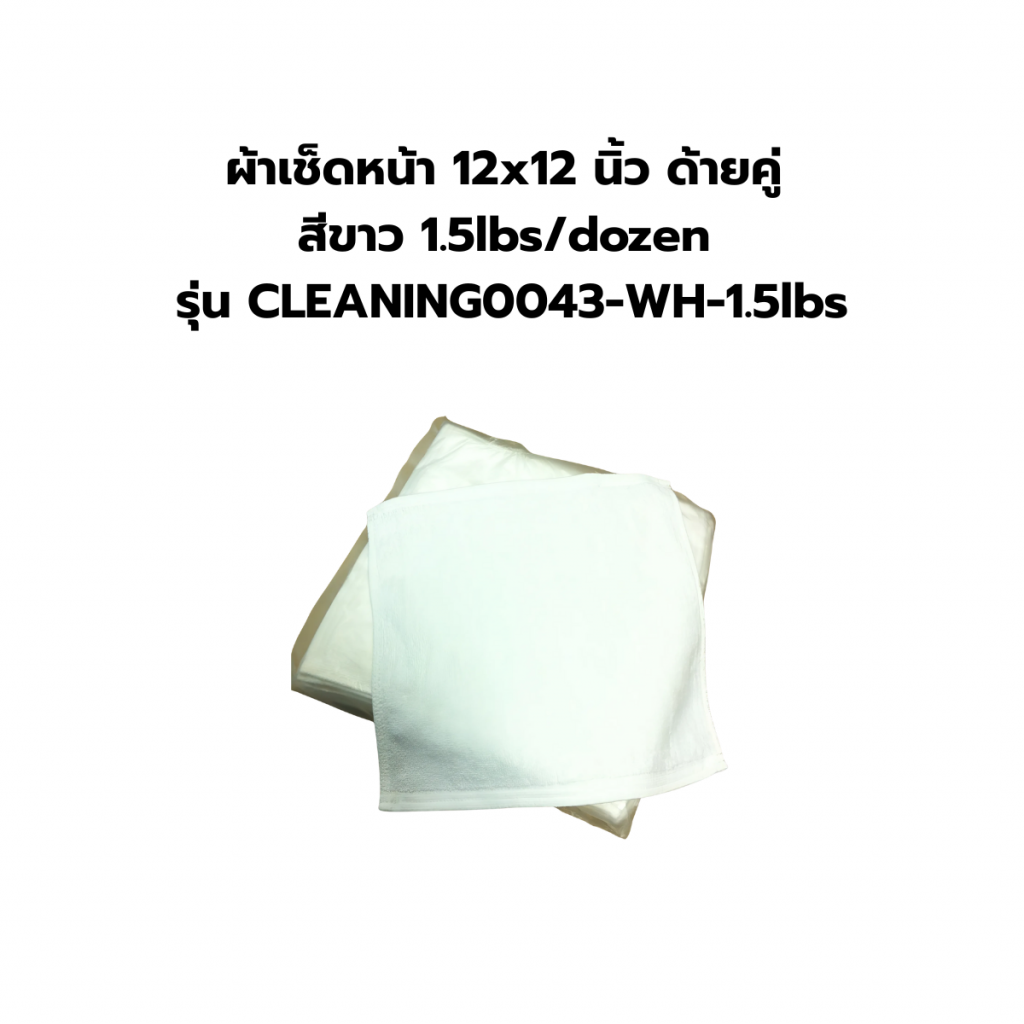 ผ้าเช็ดหน้า 12×12 นิ้ว ด้ายคู่ สีขาว 1.5lbs/dozen รุ่น CLEANING0043-WH-1.5lbs