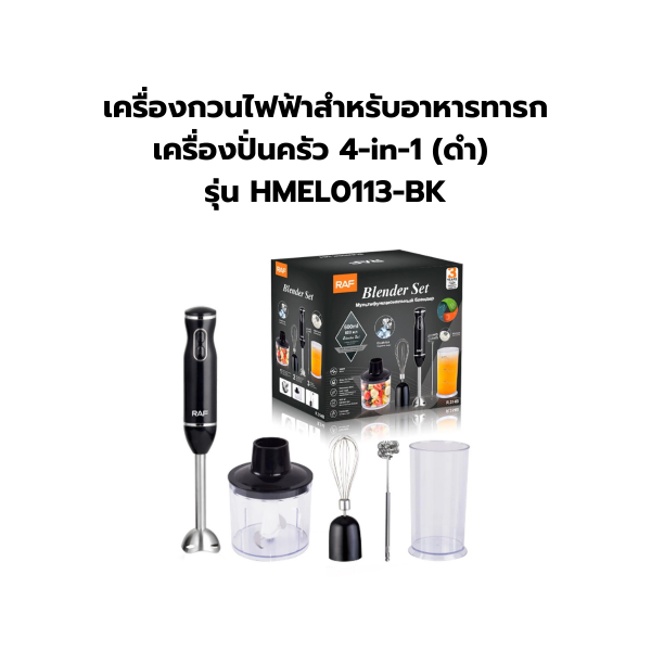 เครื่องกวนไฟฟ้าสําหรับอาหารทารก เครื่องปั่นครัว 4-in-1 (ดำ) รุ่น HMEL0113-BK