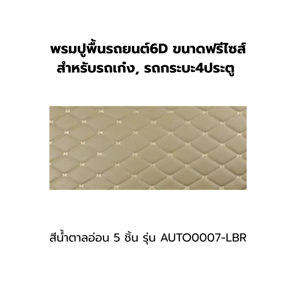 พรมปูพื้นรถยนต์6D ขนาดฟรีไซส์ สำหรับรถเก๋ง, รถกระบะ4ประตู สีครีม 5ชิ้น รุ่น AUTO0007-CR