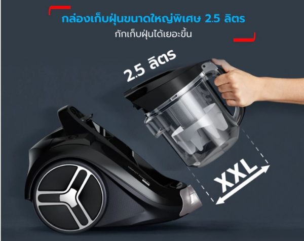 – กล่องเก็บฝุ่นขนาดใหญ่พิเศษ 2.5 ลิตร รองรับพื้นที่อยู่อาศัยทุกขนาด
