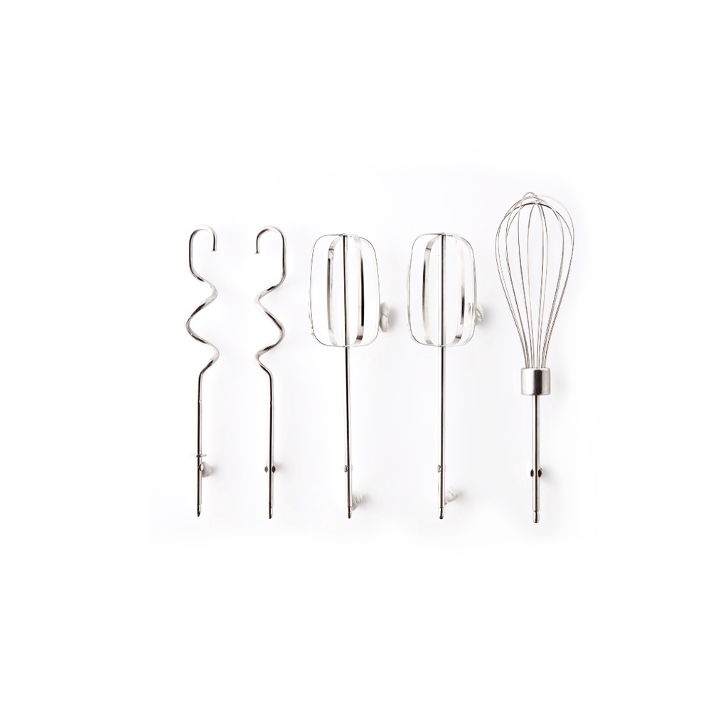 พร้อมหัวตีสเตนเลส 3 แบบ คือ หัวตะกร้อ x2 ชิ้น, หัวตะขอ x2 ชิ้น และหัวตีไข่ x1 ชิ้น