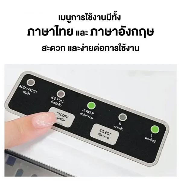 – มีปุ่มให้เลือกก้อนน้ำแข็งขนาดเล็กหรืองนาดใหญ่