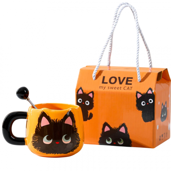 เซตแก้วกาแฟ ของขวัญลายแมวส้มสวยน่ารัก คละลาย รุ่น KC0084