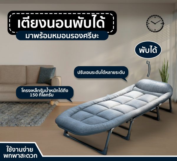 เตียงพับได้ เก้าอี้พักผ่อน เก้าอี้เอน เก้าอี้พับ รุ่น CH0199GY สีเทา