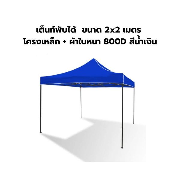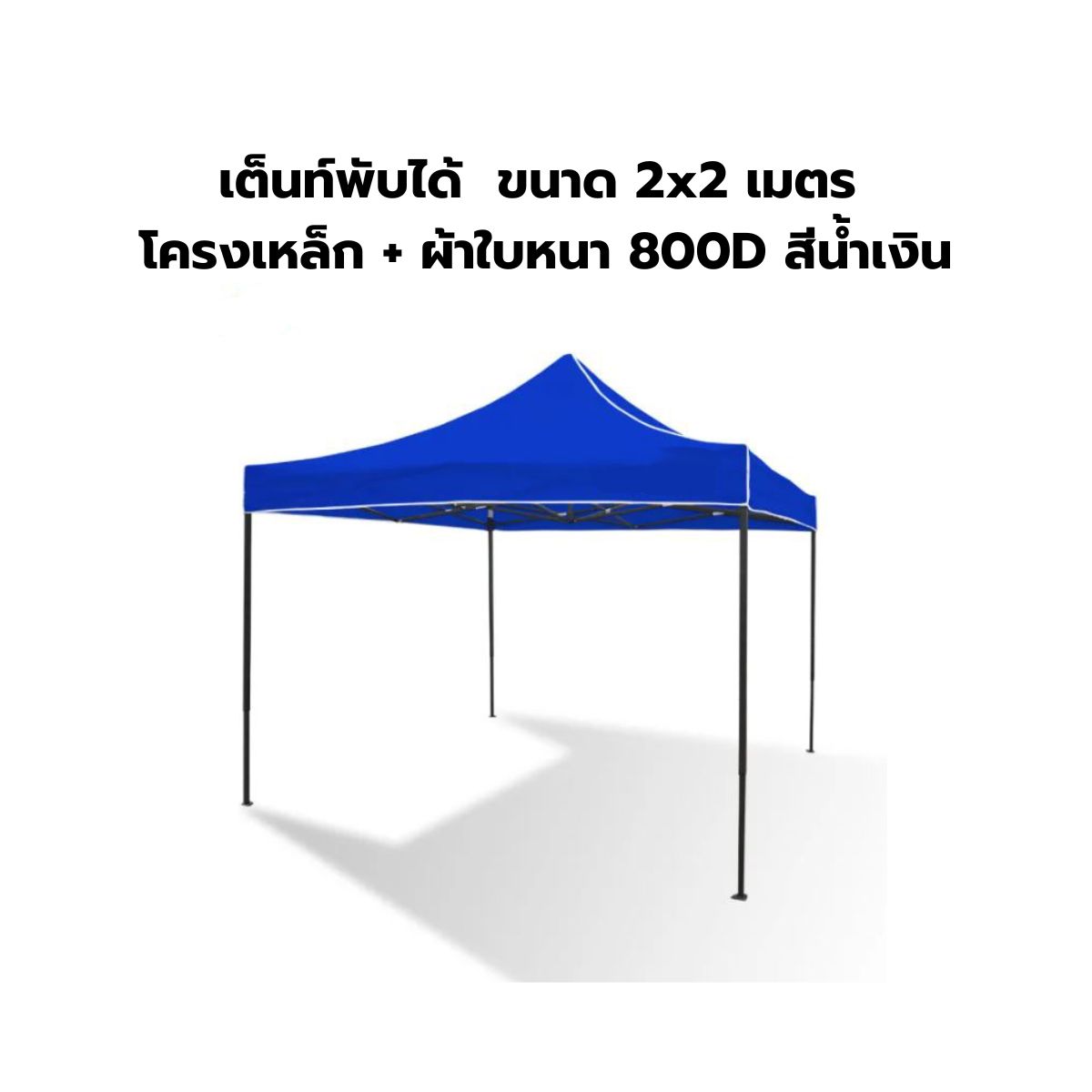 เต็นท์พับได้ ขนาด 2×2 เมตร โครงเหล็ก + ผ้าใบหนา 800D สีน้ำเงิน