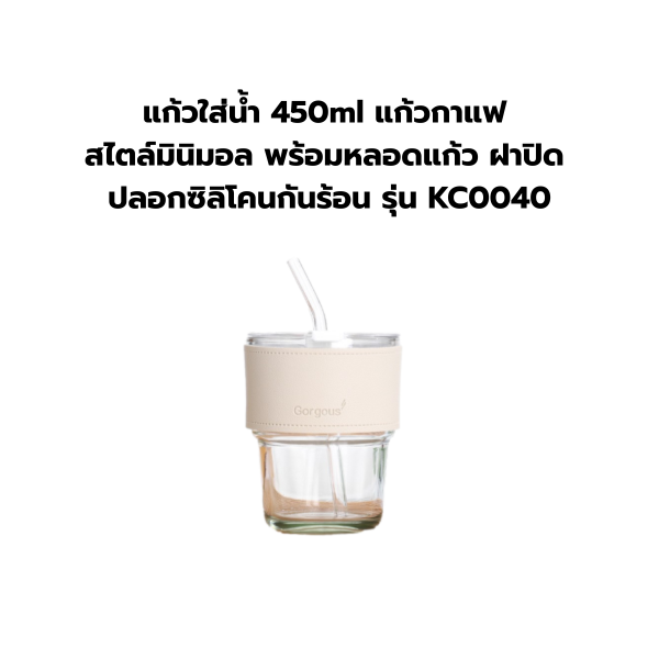 แก้วใส่น้ำ 450ml แก้วกาแฟ สไตล์มินิมอล พร้อมหลอดแก้ว ฝาปิด ปลอกซิลิโคนกันร้อน รุ่น KC0040