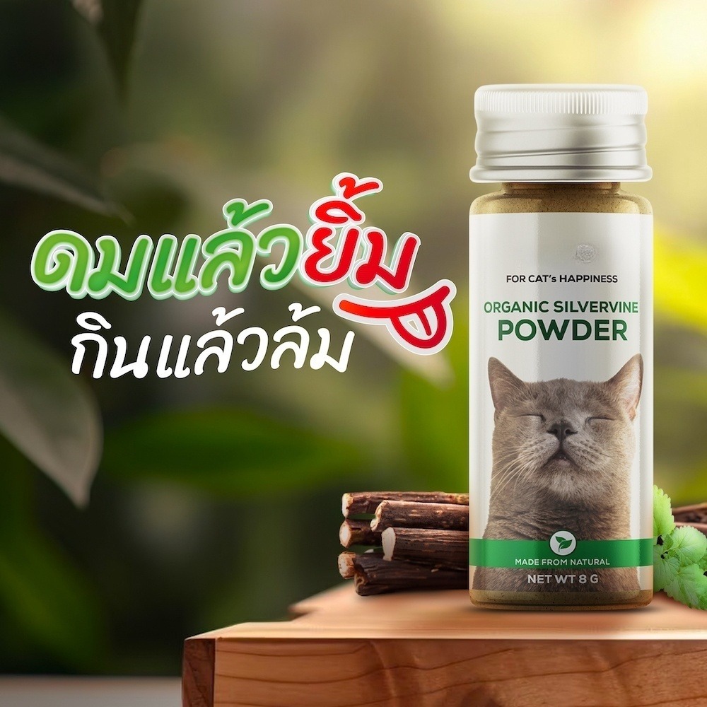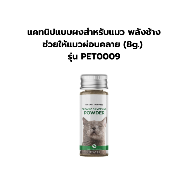 แคทนิปแบบผงสำหรับแมว พลังช้าง ช่วยให้แมวผ่อนคลาย (8g.) รุ่น PET0009