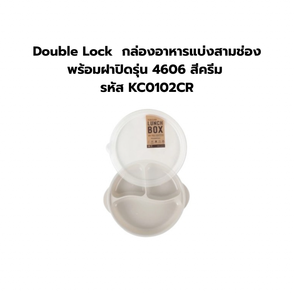 Double Lock กล่องอาหารแบ่งสามช่องพร้อมฝาปิดรุ่น 4606 สีครีม รหัส KC0102CR