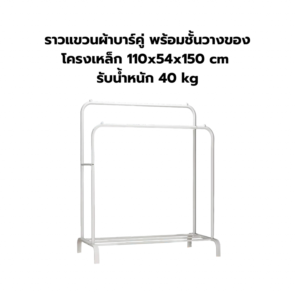 ราวแขวนผ้าบาร์คู่ พร้อมชั้นวางของ โครงเหล็ก 110x54x150 cm รับน้ำหนัก 40 kg