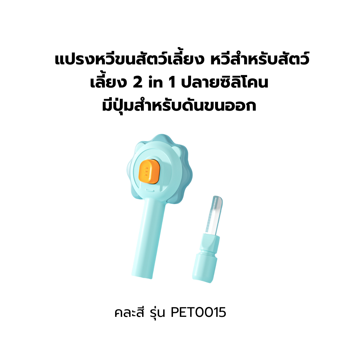 แปรงหวีขนสัตว์เลี้ยง หวีสำหรับสัตว์เลี้ยง 2 in 1 ปลายซิลิโคน มีปุ่มสำหรับดันขนออก คละสี รุ่น PET0015