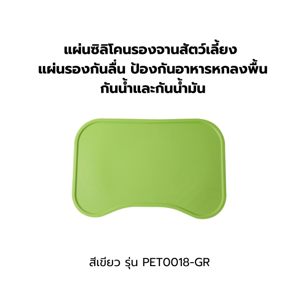 แผ่นซิลิโคนรองจาน สัตว์เลี้ยง แผ่นรองกันลื่น ป้องกันอาหารหกลงพื้น กันน้ำและกันน้ำมัน สีเขียว รุ่น PET0018-GR
