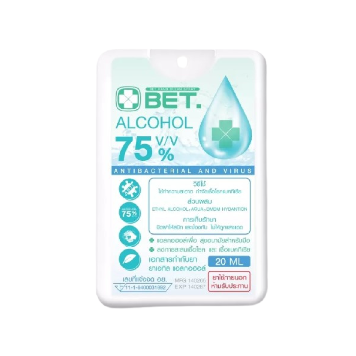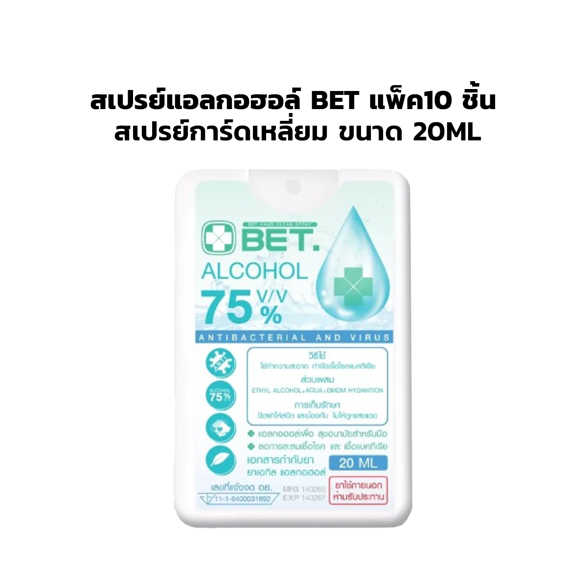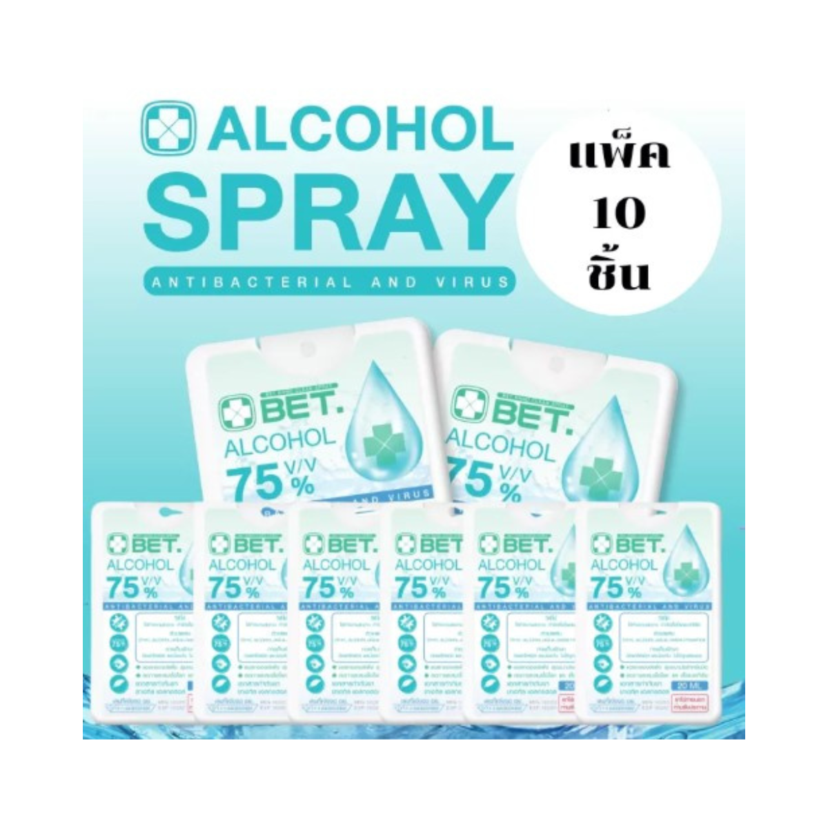แพ็ค10 ชิ้น สเปรย์แอลกอฮอล์ BET สเปรย์การ์ดเหลี่ยม ขนาด 20ML