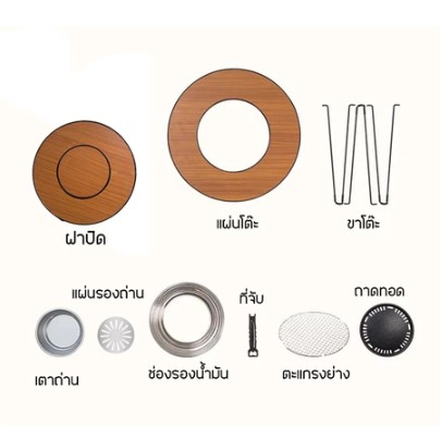– มีตะแรงย่างและถาดสำหรับประกอบอาหารในชุด