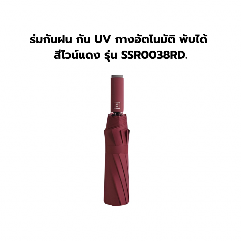 ร่มกันฝน กัน UV กางอัตโนมัติ พับได้ สีไวน์แดง รุ่น SSR0038RD.
