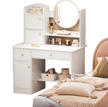 การออกแบบโต๊ะเครื่องแป้ง เน้นพื้นที่เก็บของแบบเปิดทำให้มีพื้นที่เก็บของที่หลากหลาย เดสก์ท็อปมีขนาดกว้างขวางและสามารถรองรับเครื่องสำอางและของใช้ส่วนตัวได้หลากหลาย การออกแบบลิ้นชักที่ติดตั้งไว้ทำให้การเก็บของชิ้นเล็กๆ สะดวกยิ่งขึ้น และหลีกเลี่ยงความยุ่งเหยิงบนเดสก์ท็อป แผงจัดเก็บข้อมูลด้านล่างช่วยให้คุณมีพื้นที่จัดเก็บเพิ่มเติมสำหรับหนังสือ อุปกรณ์เสริม หรือสิ่งของจำเป็นในชีวิตประจำวันอื่นๆ โครงสร้างโดยรวมมีความเสถียรทำให้มั่นใจในความปลอดภัยและความน่าเชื่อถือสำหรับการใช้งานในระยะยาว ไม่ว่าจะใช้งานประจำวันหรือสังสรรค์เป็นครั้งคราว โต๊ะเครื่องแป้ง FMD ก็สามารถตอบสนองความต้องการของคุณได้