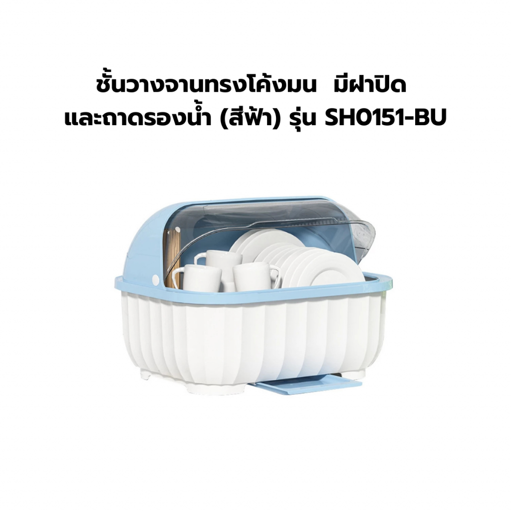 ชั้นวางจานทรงโค้งมน มีฝาปิด และถาดรองน้ำ (สีฟ้า) รุ่น SH0151-BU