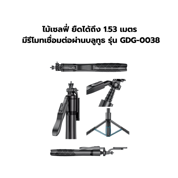 ไม้เซลฟี่ ยืดได้ถึง 1.53 เมตร มีรีโมทเชื่อมต่อผ่านบลูทูธ รุ่น GDG-0038
