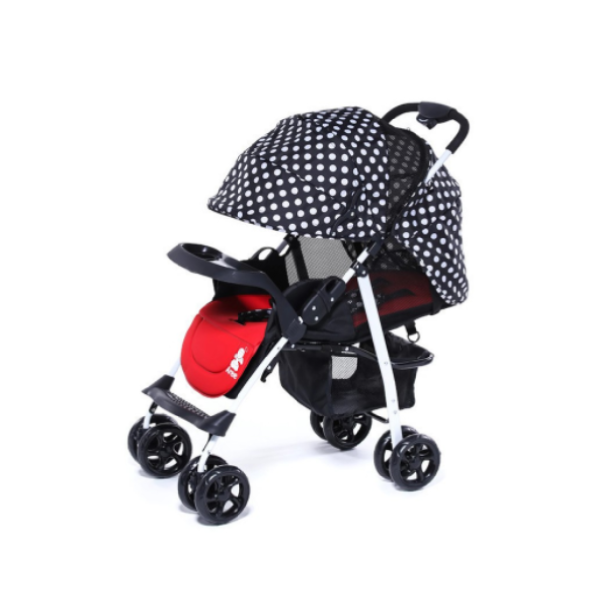 – หลังคาปรับได้หลายระดับ มีตัวล็อคกันพับและมีซิปเปิดสำหรับระบายอากาศ